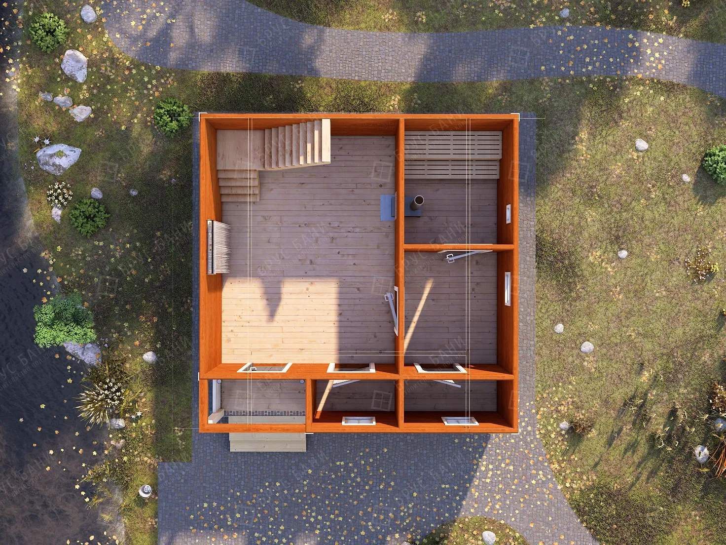 Баня из бруса 6x6 - планировка первого этажа