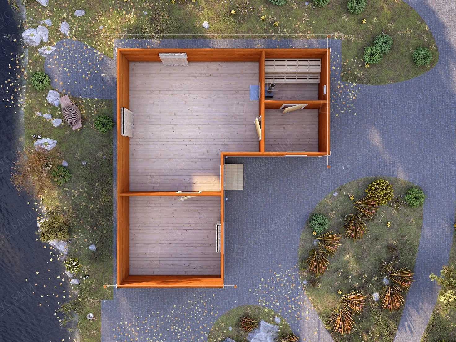 Баня из бруса 8x9 - планировка первого этажа