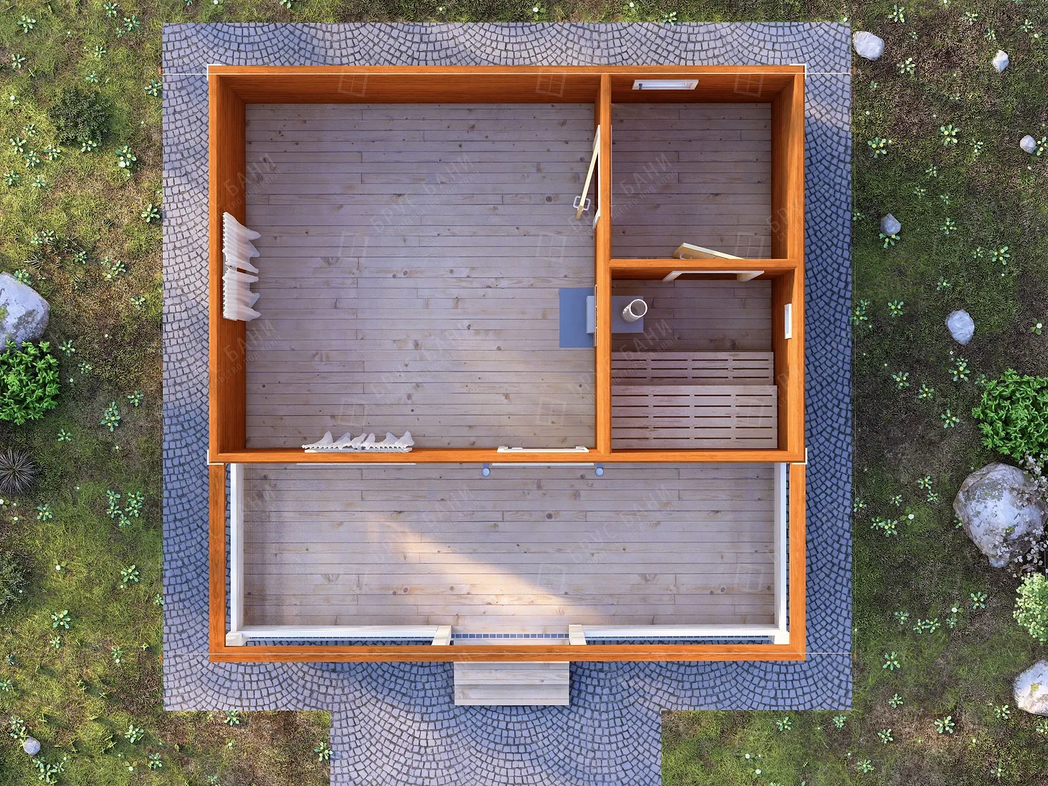 Баня из бруса 6x6 - планировка первого этажа