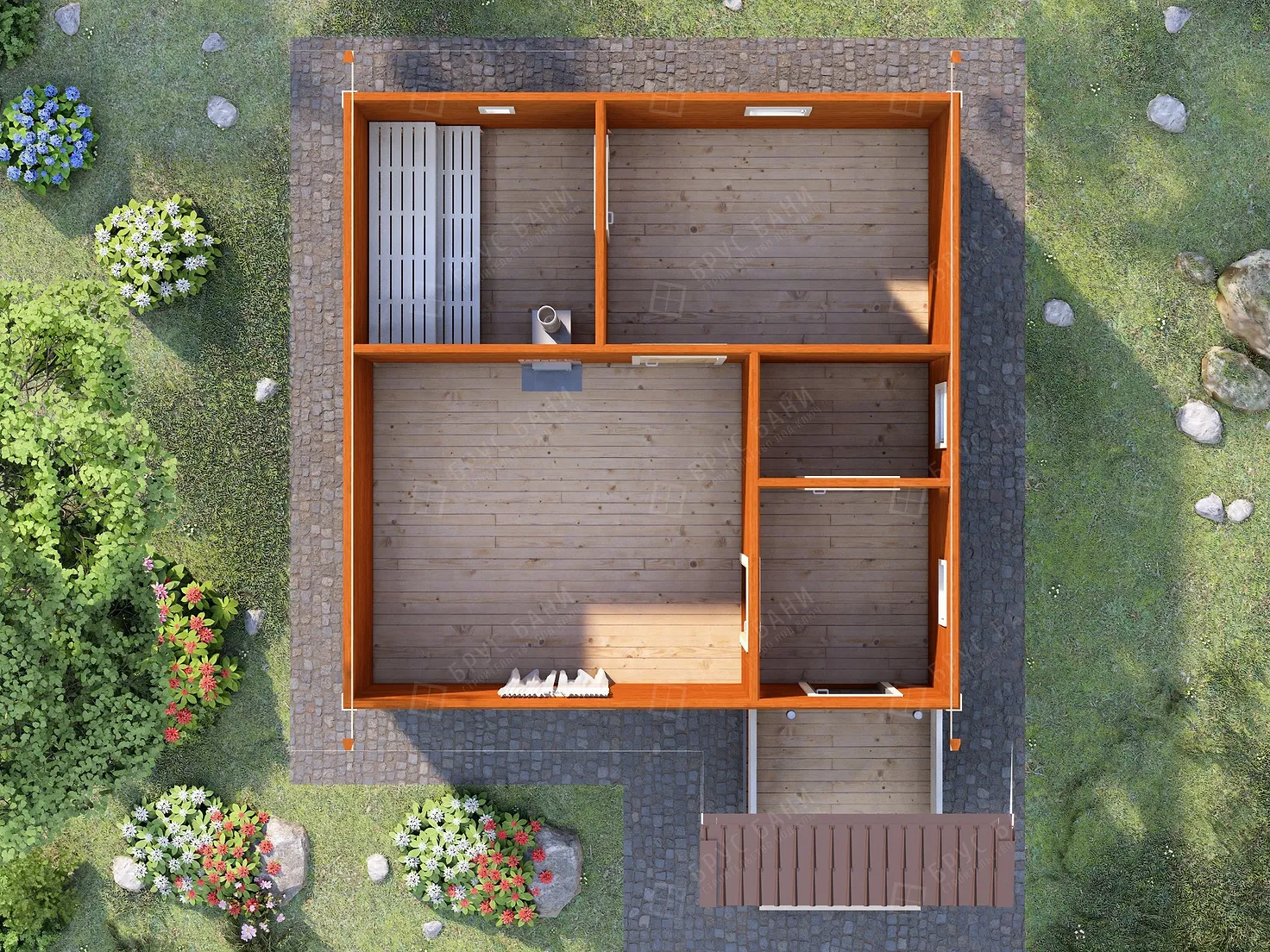 Баня из бруса 6x6 - планировка первого этажа