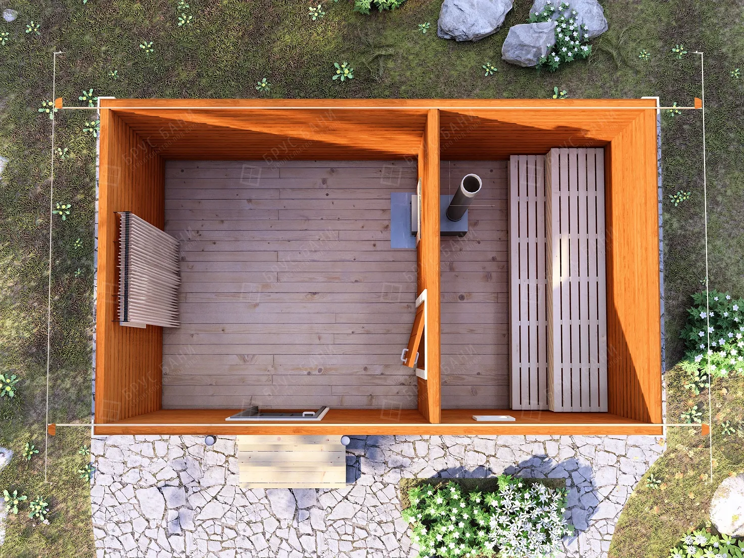 Баня из бруса 3x5 - планировка первого этажа