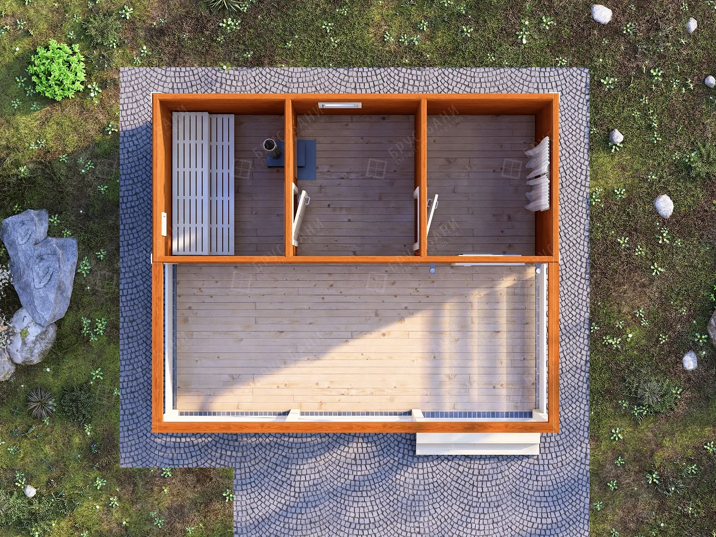 Баня из бруса 5x6 - планировка первого этажа