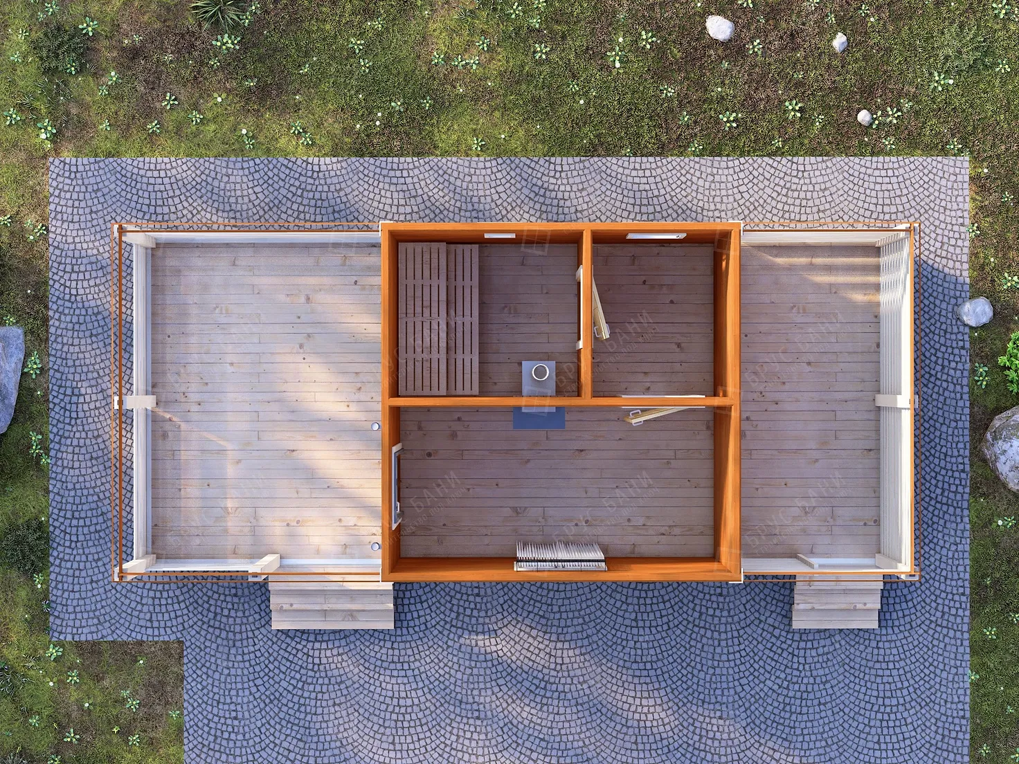Баня из бруса 4x9 - планировка первого этажа