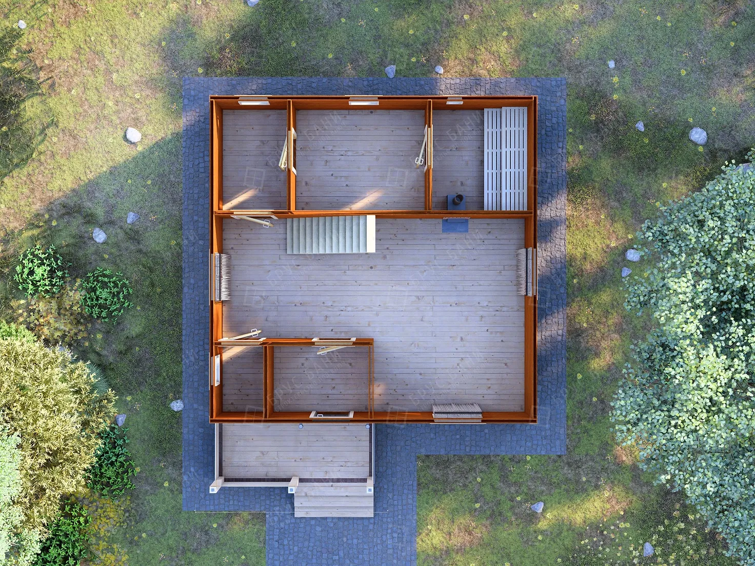 Баня из бруса 7x7 - планировка первого этажа