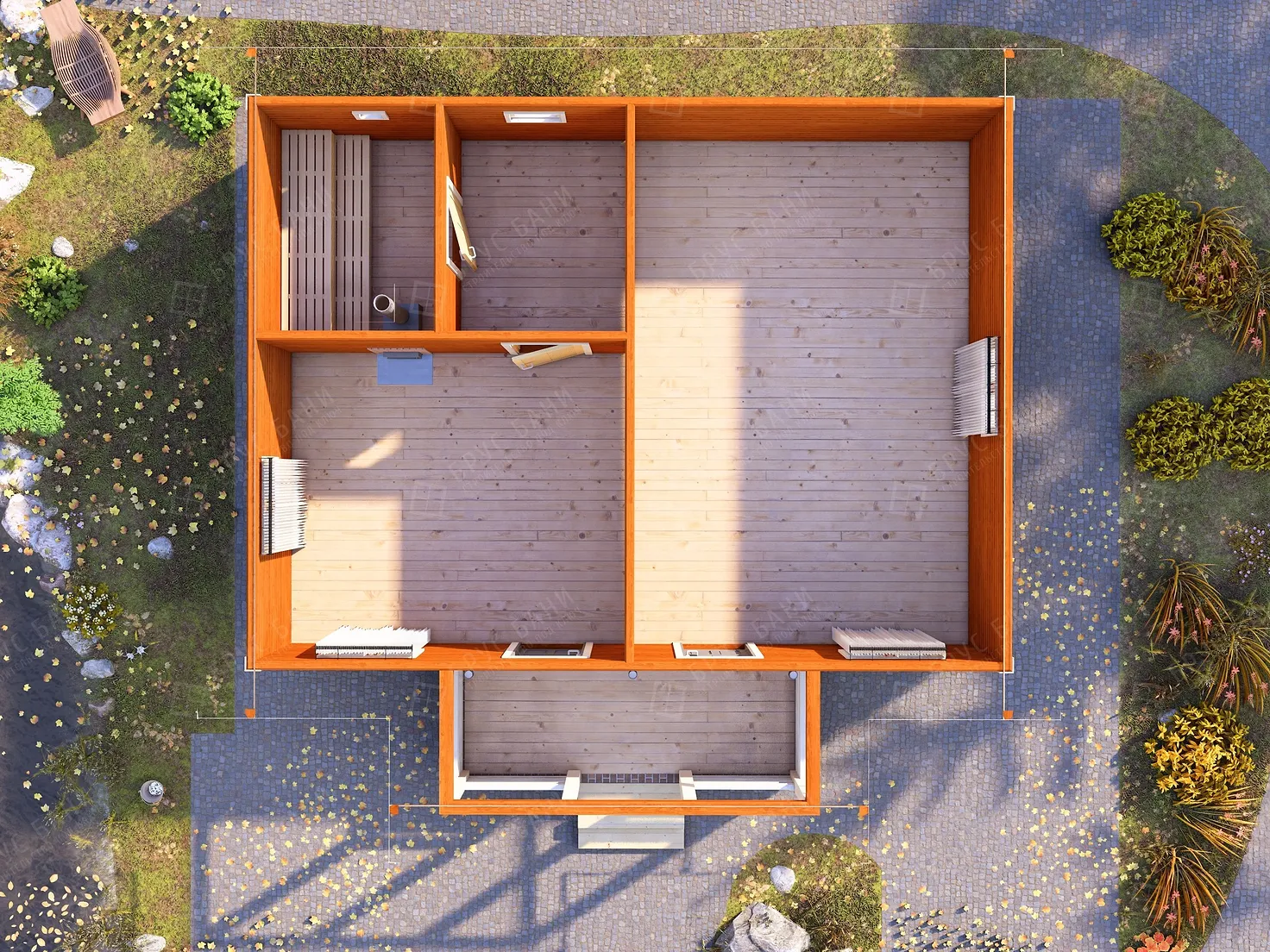 Баня из бруса 6x8 - планировка первого этажа