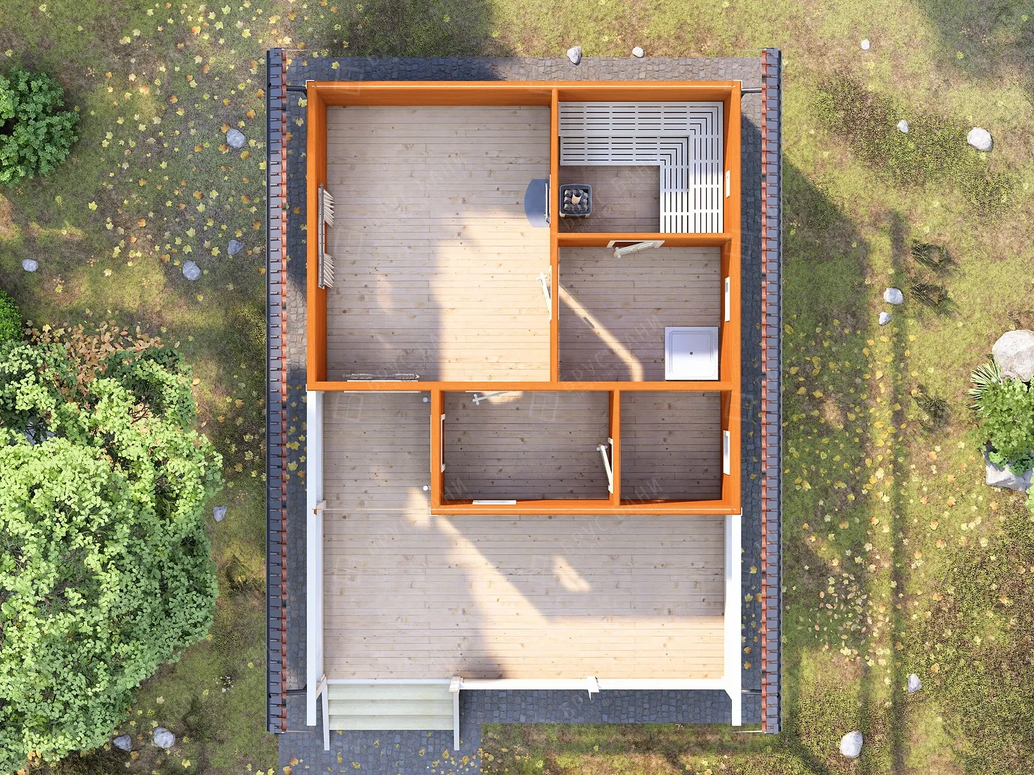 Баня из бруса 7x10 - планировка первого этажа