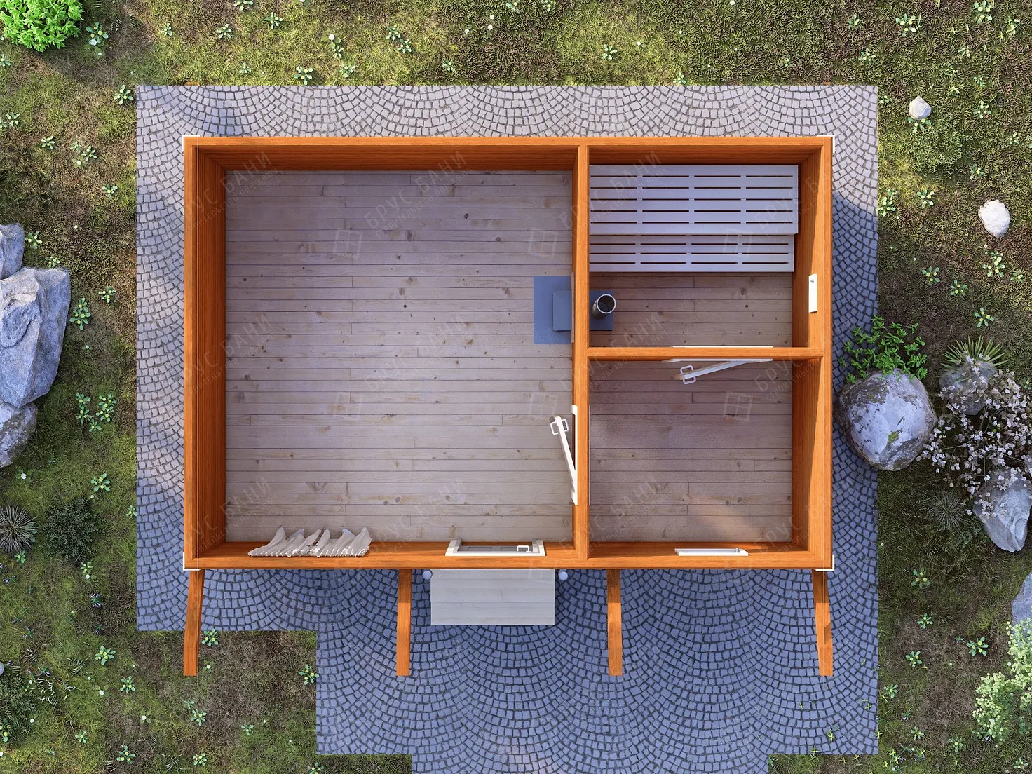 Баня из бруса 4x6 - планировка первого этажа