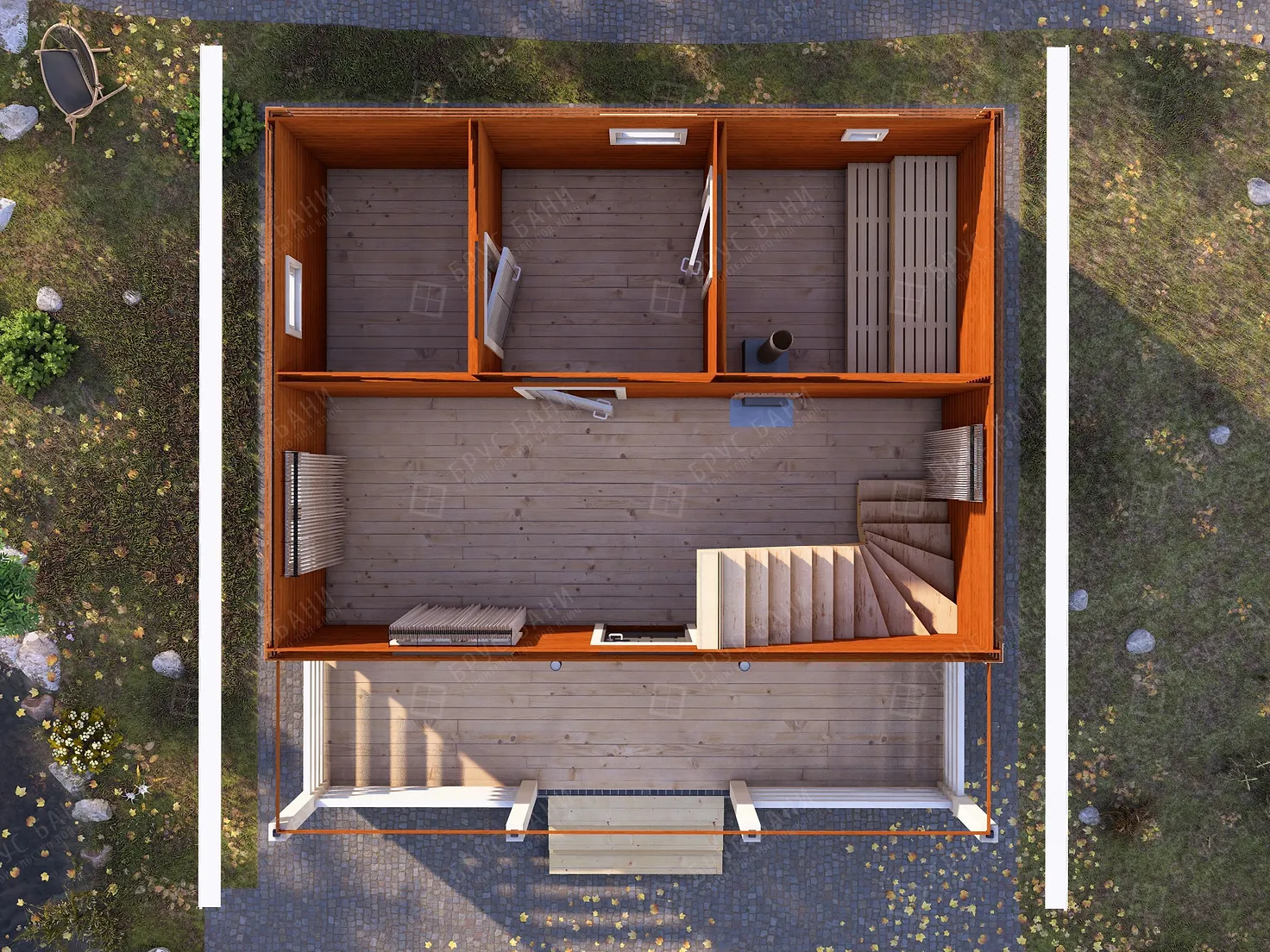 Баня из бруса 6x6 - планировка первого этажа