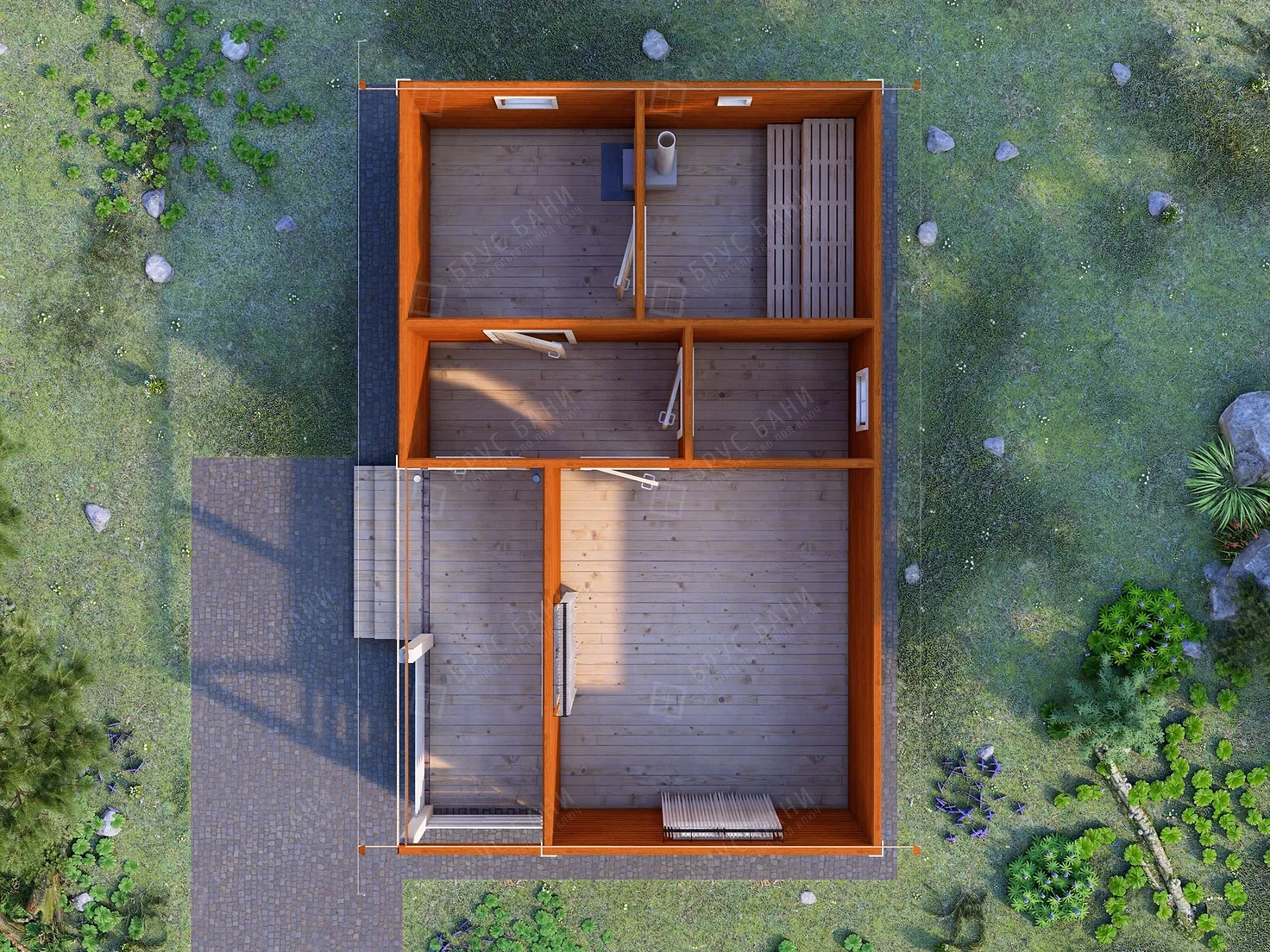Баня из бруса 5x8 - планировка первого этажа