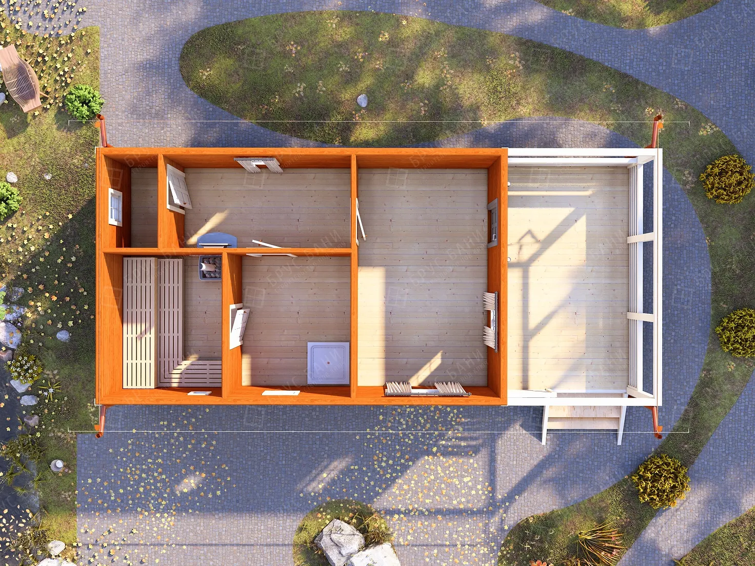 Каркасная баня 5x11 - планировка первого этажа