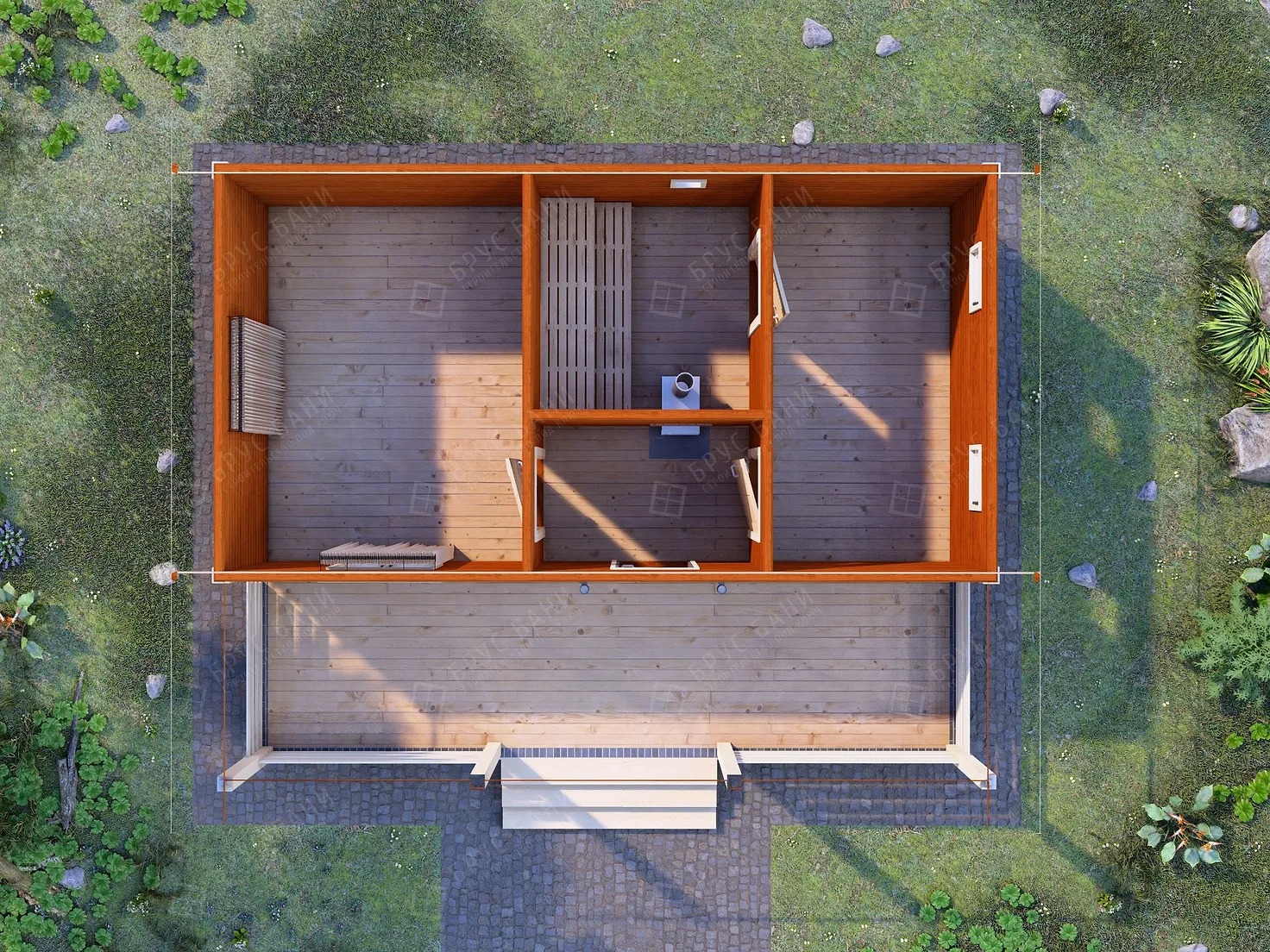 Каркасная баня 6x7.5 - планировка первого этажа