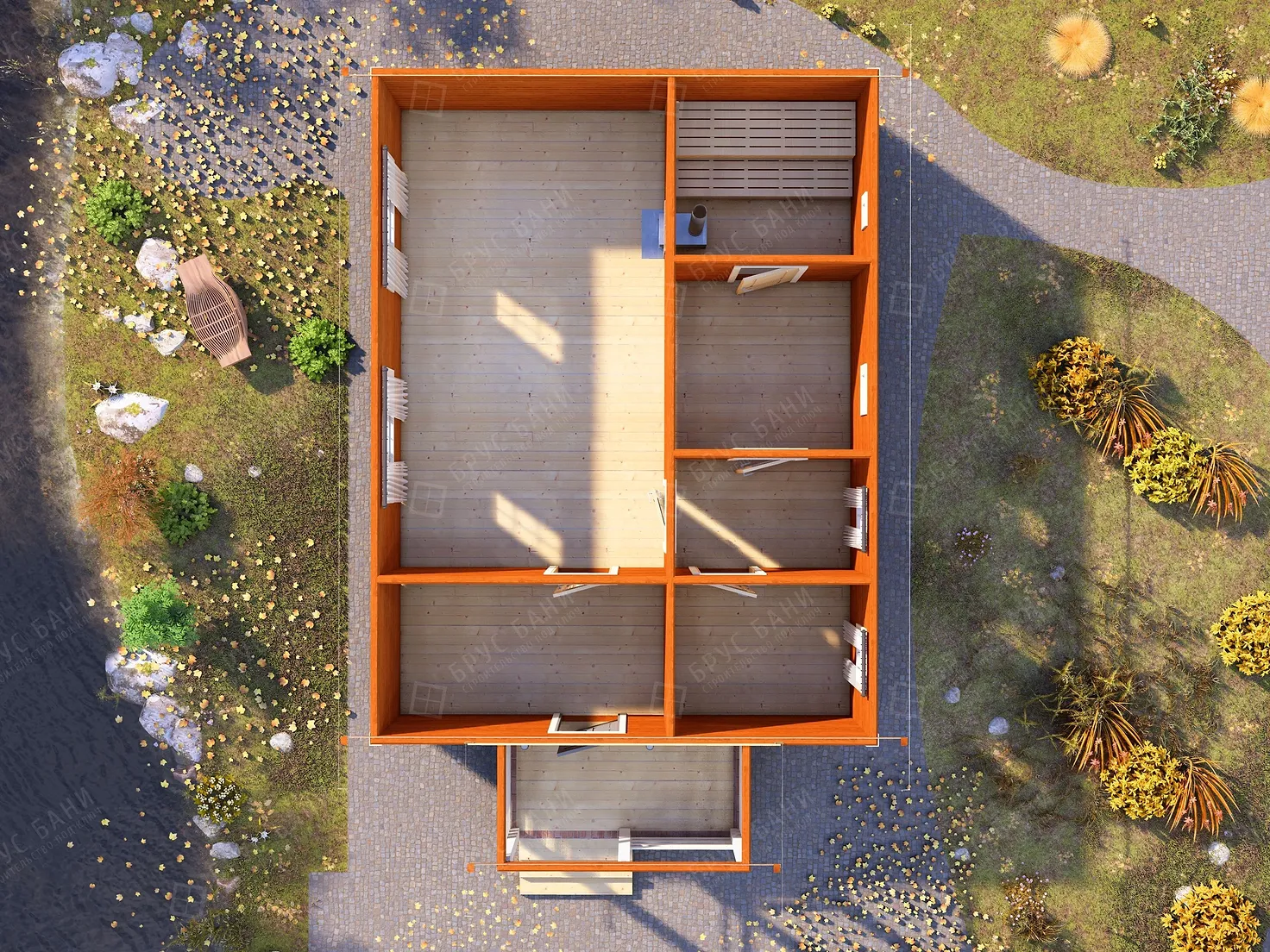 Каркасная баня 6x8 - планировка первого этажа