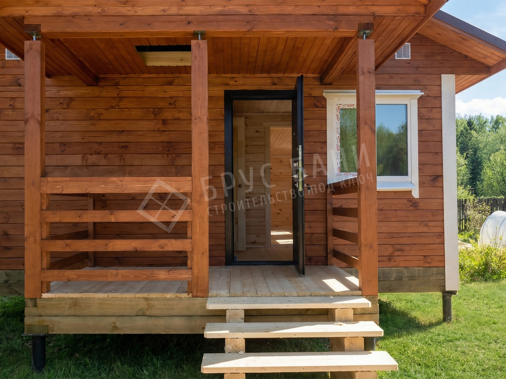 Покраска и обработка бани снаружи в два слоя (BIOTEKS) (Цвет: Груша)