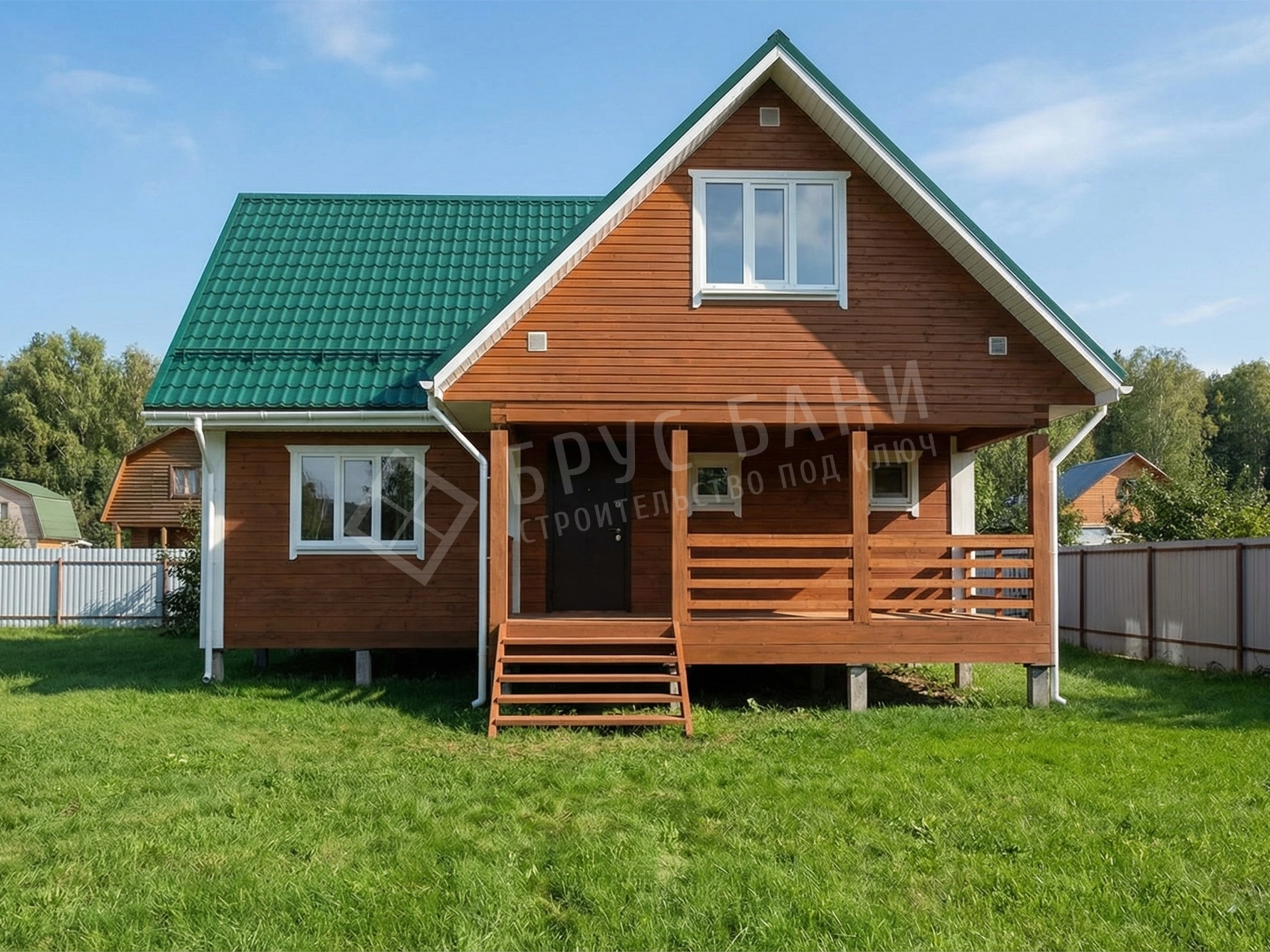 Комплектуется ступенями, заходными столбами, перилами, балясинами точеными.