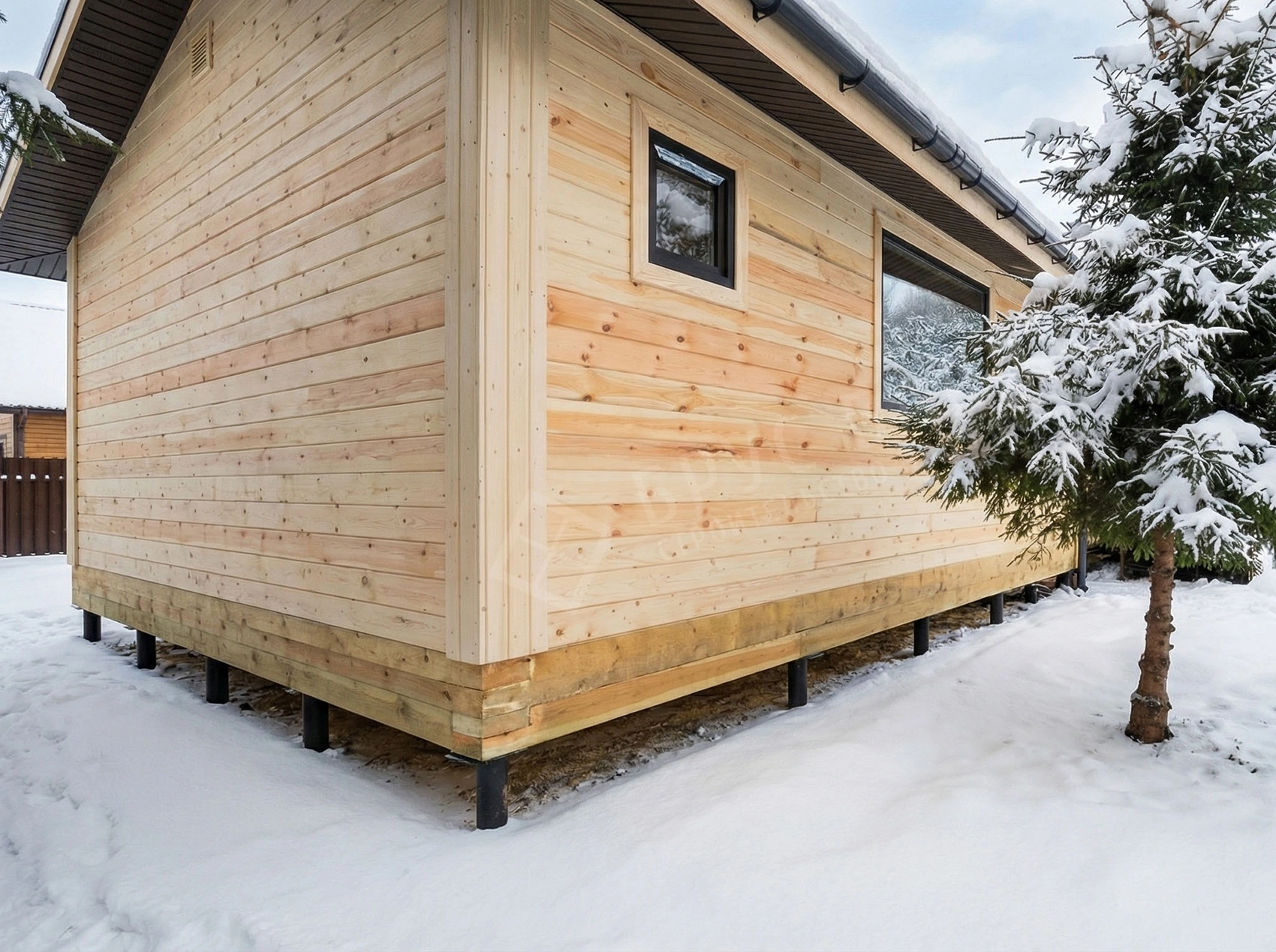 Отделка цоколя фундамента фасадная панель "DOCKE", высота цоколя 40 см