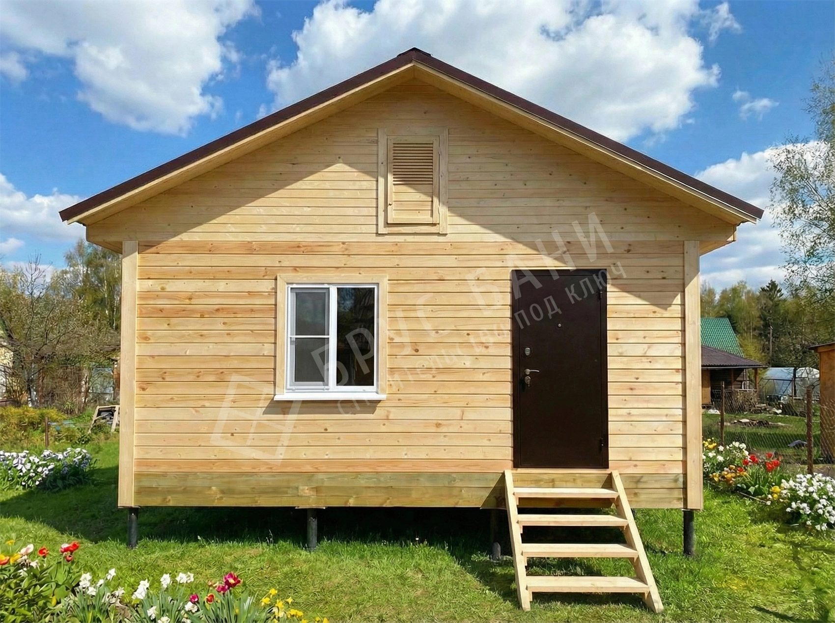 Ступени при входе временные из обрезной доски. Без балясин и перил