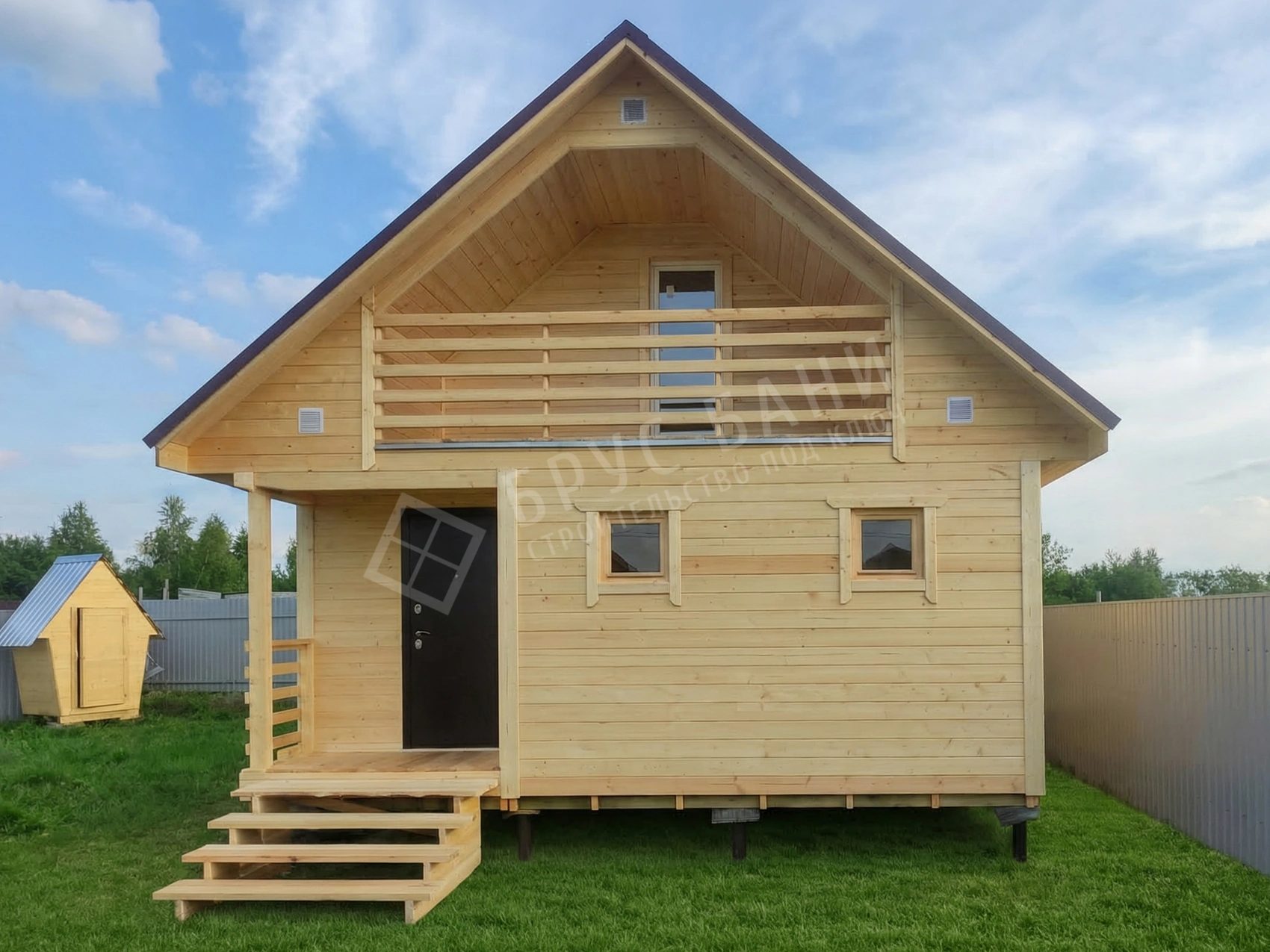 Комплектуется ступенями, заходными столбами, перилами, балясинами точеными.